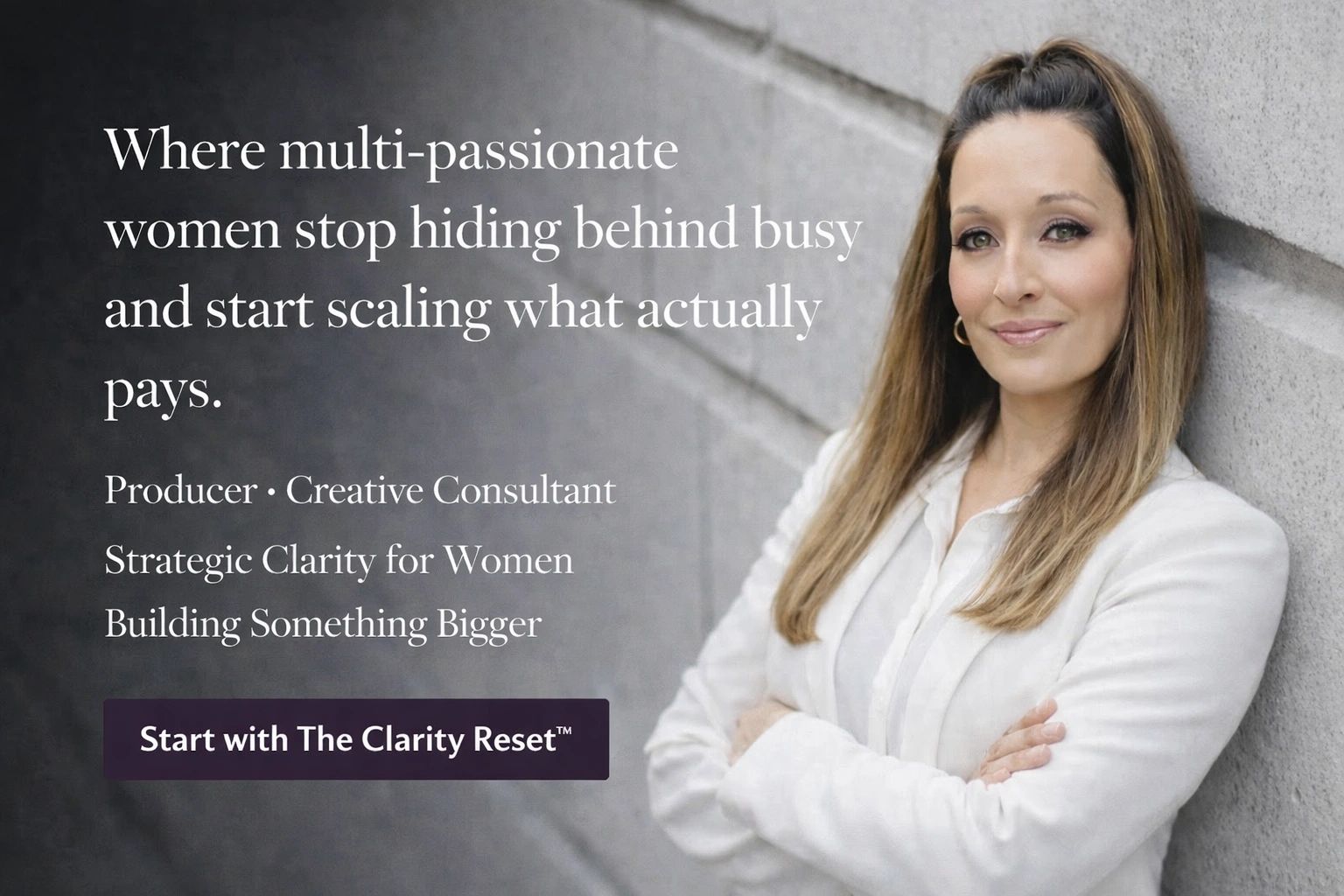 Get The Clarity Reset™ — a free 5-step framework to narrow your focus and scale what actually pays. Strategic clarity for women building something real.